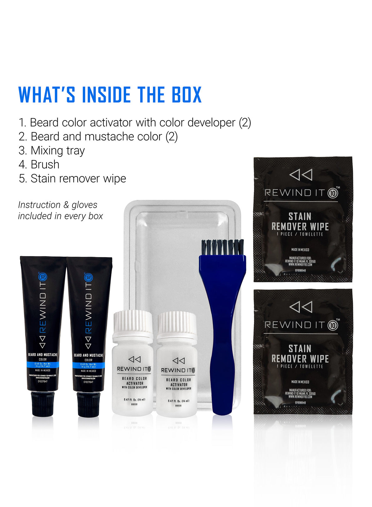 5. For maximum effectiveness, use brush in kit to apply color mixture right away to clean, dry facial hair.