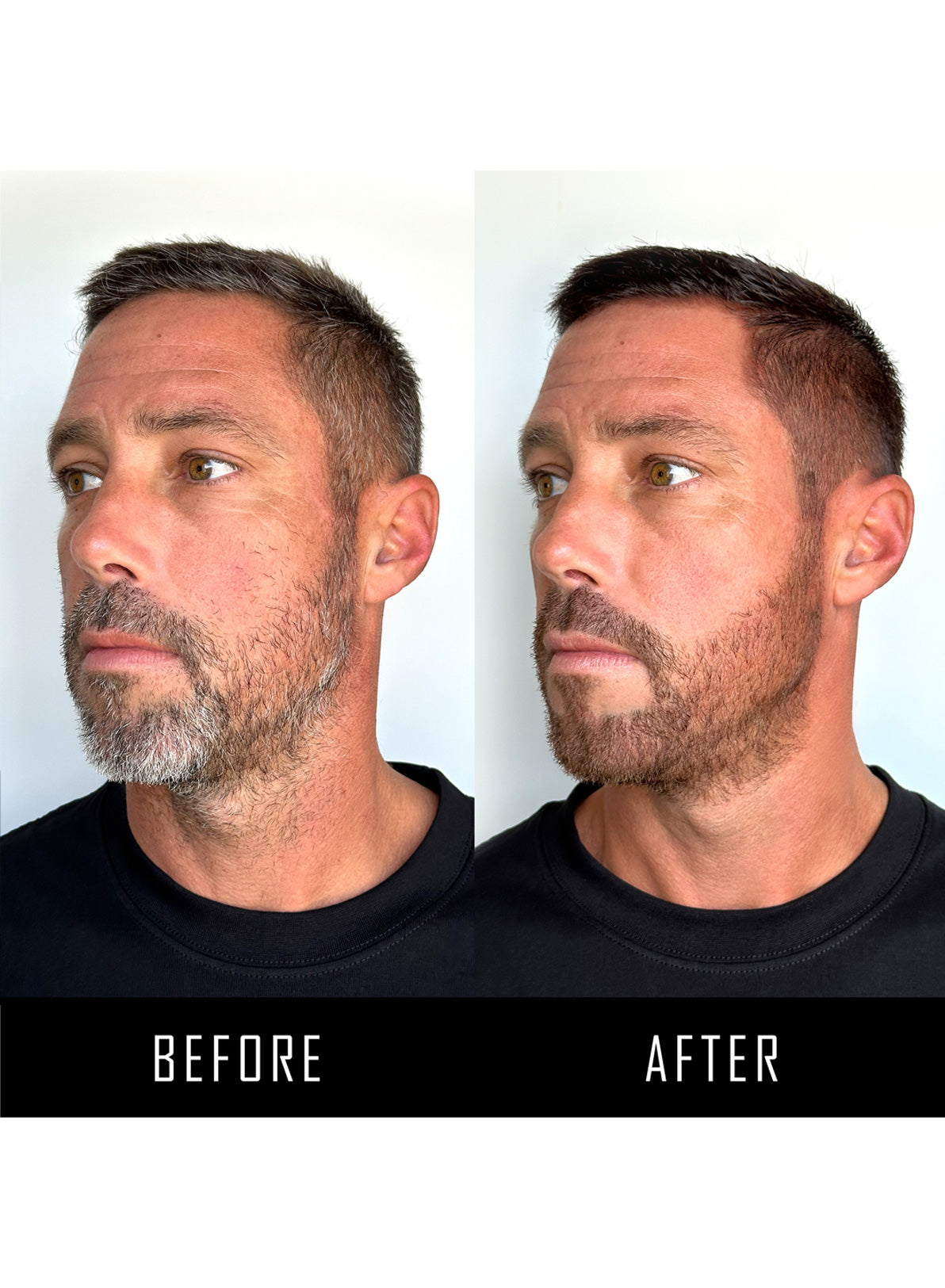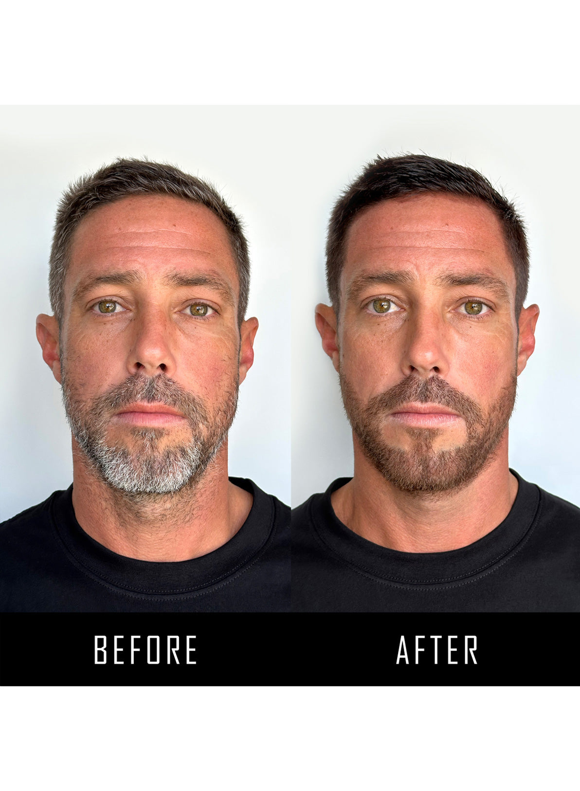 Use our performance beard applicator to apply the formula onto stubborn greys + style as desired.