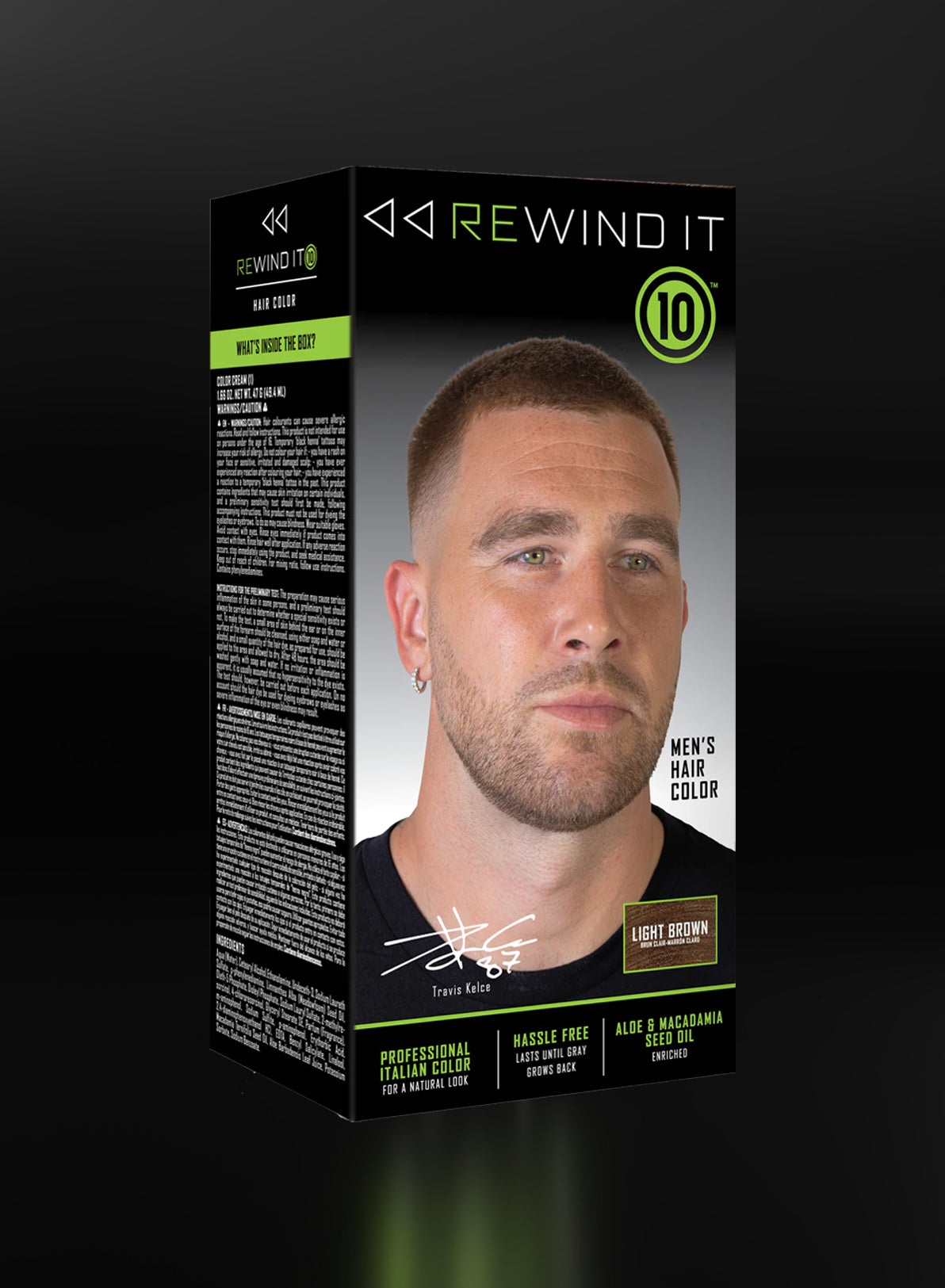 With Rewind It 10®, achieving a flawless, youthful appearance is a breeze. This easy-to-use hair color kit boasts a quick application process and impeccable results, just like Travis Kelce's signature style.
