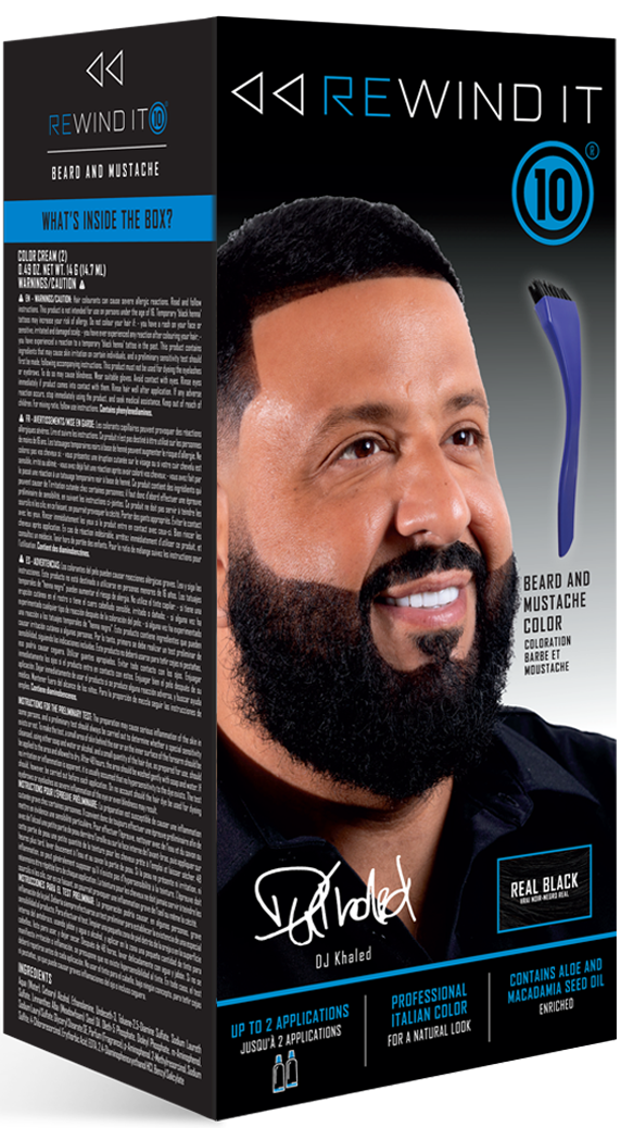 DJ Khaled knows the importance of a flawless beard that radiates confidence. When it comes to maintaining his signature style, he turns to none other than REWIND It 10's Real Black Beard Color Kit.